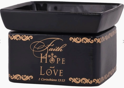 2-in-1 Warmer - Made of ceramic stoneware. Use with wax tarts, wax cubes, scented oils, soy beads, potpourri, and more by using the top dish. You can also remove the top dish and place a jar candle directly on the metal warming plate to use as a candle jar warmer; Can be used as a coffee mug warmer. Has a red light on the back of the warmer to let you know when it is on.  Designed with a saying to add meaning as a gift or home decor item.